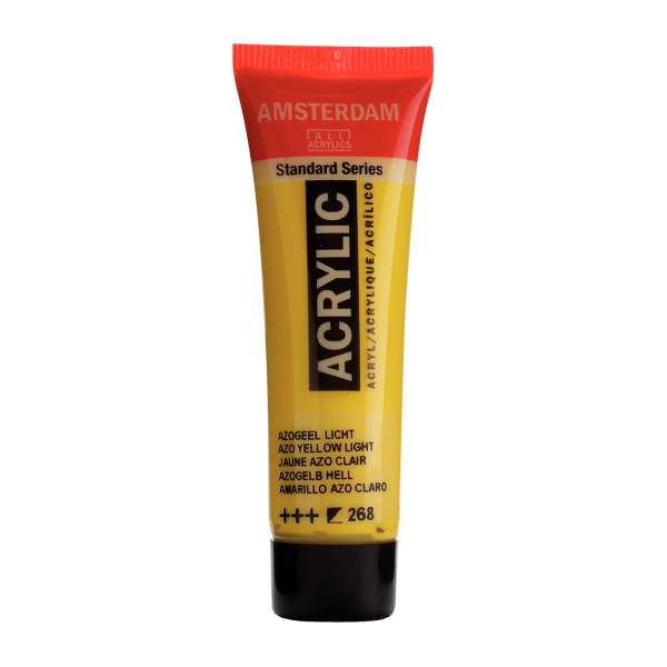 Farba akrylowa Amsterdam azo yellow light 268 to paleta barw w jasnym odcieniużółtego, który nadaje Twoim projektom artystycznym intensywności i wyjątkowej wyrazistości, tworząc atmosferę pełną energii i ekspresji. Farby akrylowe Amsterdam o pojemności 20 ml, dostępne w szerokiej palecie 90 kolorów. To produkty wysokiej jakości, które oferują nieograniczone możliwości tworzenia i malowania. Ponieważ farby Amsterdam charakteryzują się doskonałą pigmentacją, pozwala to na tworzenie wyrazistych dzieł sztuki. Nowoczesna technologia zapewnia odporność na działanie światła, co zapewnia trwałość i intensywność kolorów na długi okres czasu. Farby oparte są na spoiwie z żywicy akrylowej, co gwarantuje ich elastyczność. Produkty Amsterdam acrylic doskonale sprawdzają się w malarstwie ściennym, pozwalając na tworzenie wyjątkowych dekoracji wnętrz. Farby można łatwo rozcieńczać wodą, co pozwala na uzyskanie różnych efektów i gęstości kolorów. Farby szybko schną, umożliwiając skrócenie czasu oczekiwania na kolejne warstwy czy dokończenie pracy. Po wyschnięciu farby są bezwonne oraz odporne na wodę, co zapewnia trwałość i stabilność dzieła.