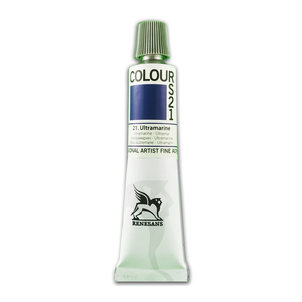 Farba akrylowa Renesans ultramarine 21. Farby akrylowe Colours 20 ml Renesans to produkty oparte na 100% dyspersji polimeru akrylowego. Zapewnia to ich wysoką jakość. Dzięki specjalnej formule są łatwe w użyciu, a jednocześnie dostępne w atrakcyjnej cenie. Farby Colours tworzą matową powłokę o intensywnej kolorystyce, co pozwala na uzyskanie wyrazistych efektów artystycznych. W ofercie dostępnych jest 30 różnych kolorów, które można swobodnie mieszając ze sobą, a także 7 odcieni metalicznych, co daje artystom szerokie możliwości twórcze.