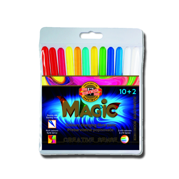 flamastry Magic posiadają dodatkowy bezbarwny flamaster, którym można zmienić kolory wykonanego obrazka