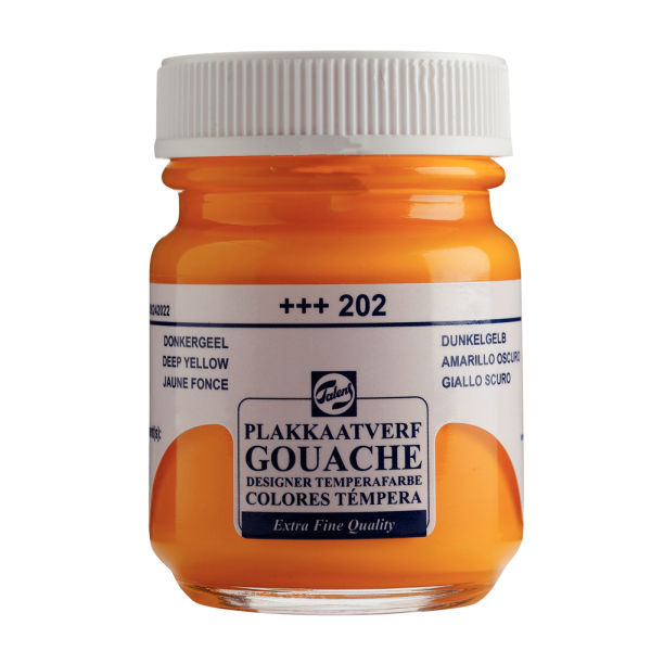 Gwasz Extra Fine Quality deep yellow 202 to intensywny odcieniem głębokiego żółtego. Tenpromienny odcień żółtego doskonale nadaje się do tworzenia dynamicznych i wyrazistych akcentów w dziełach sztuki. Gwasze Extra Fine Quality Talens w słoiczkach, to farby wodne o wysokiej jakości. Doskonałe dla grafików, uczniów i studentów. Gwasze Extra Fine są bardzo łatwe w użyciu i aplikacji. Co więcej, szybko schną, zwykle w ciągu zaledwie kilku minut. Po wyschnięciu praca nabiera atrakcyjnego wyglądu przypominającego matowy aksamit, co nadaje Twoim dziełom wyjątkowy charakter. Gouache Extra Fine Quality cechuje się wysoką właściwością przylegania do powierzchni, które są wolne od tłuszczu i mają strukturę porowatą, takie jak papier i tektura.