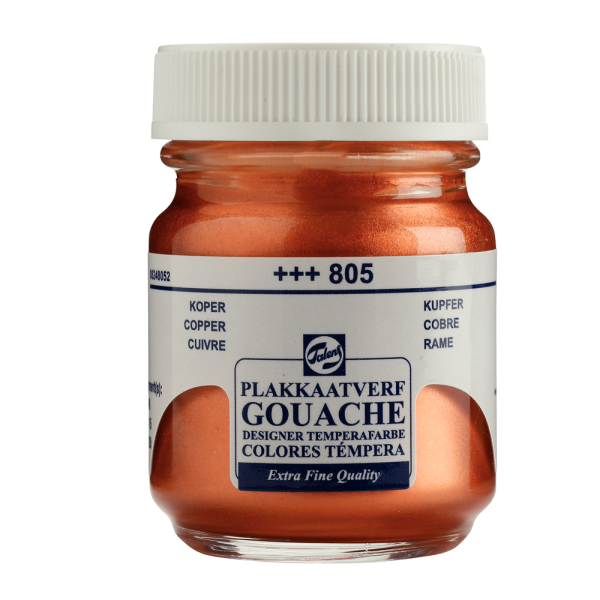 Gwasz Extra Fine Quality cooper 805 to farba gwaszowa charakteryzująca się pięknym, metalicznym i wyrazistym odcieniem miedzi. Ten kolor doskonale nadaje się do tworzenia dzieł sztuki, które emanują elegancją i metalicznym blaskiem. Gwasze Extra Fine Quality Talens w słoiczkach, to farby wodne o wysokiej jakości. Doskonałe dla grafików, uczniów i studentów. Gwasze Extra Fine są bardzo łatwe w użyciu i aplikacji. Co więcej, szybko schną, zwykle w ciągu zaledwie kilku minut. Po wyschnięciu praca nabiera atrakcyjnego wyglądu przypominającego matowy aksamit, co nadaje Twoim dziełom wyjątkowy charakter. Gouache Extra Fine Quality cechuje się wysoką właściwością przylegania do powierzchni, które są wolne od tłuszczu i mają strukturę porowatą, takie jak papier i tektura.